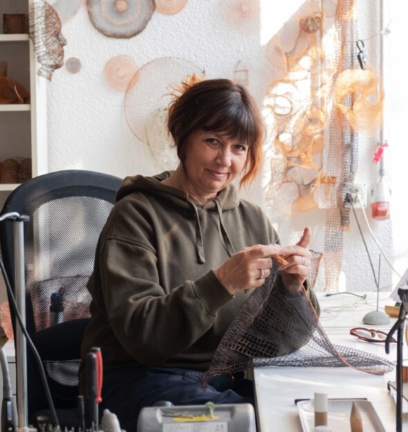 Artiste du métal, Marta Blanc sculpte de délicates œuvres en fils métalliques témoignant de la précision de son savoir-faire.