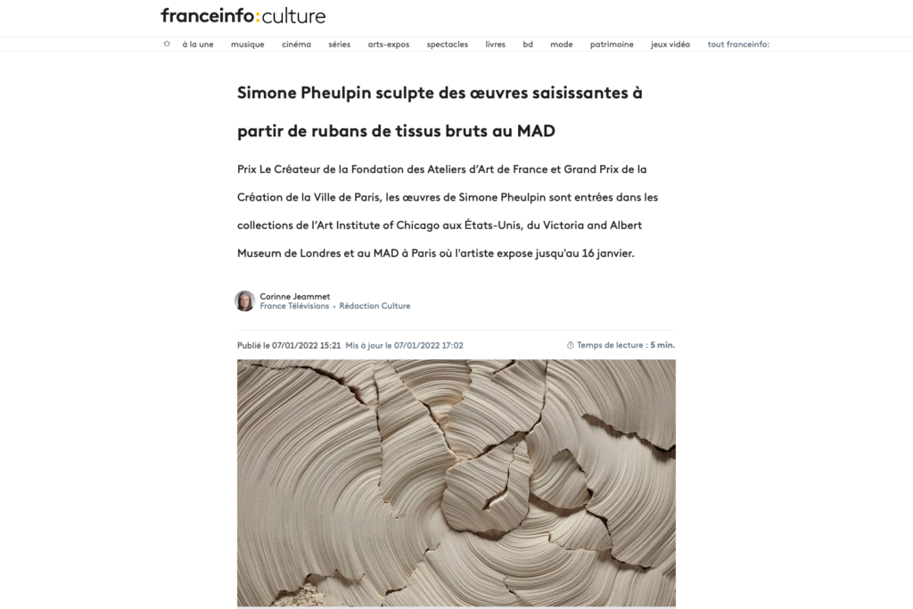 Franceinfo « Simone Pheulpin sculpte des oeuvres saisissantes à partir de rubans… »