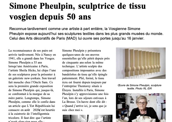 Est Républicain « Simone Pheulpin, sculptrice de tissu vosgien depuis plus de 50 ans »