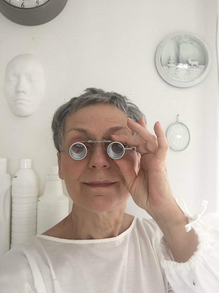 Now a photographer and sculptor, she creates elaborate artworks in PET and organza, all based on traditional patternmaking, sewing and embroidery techniques. Whether still lifes or portraits of real people, her sculptures are entirely made up of a thin layer of white gauze, creating an interplay between fullness and emptiness and revealing what is present and what is absent.