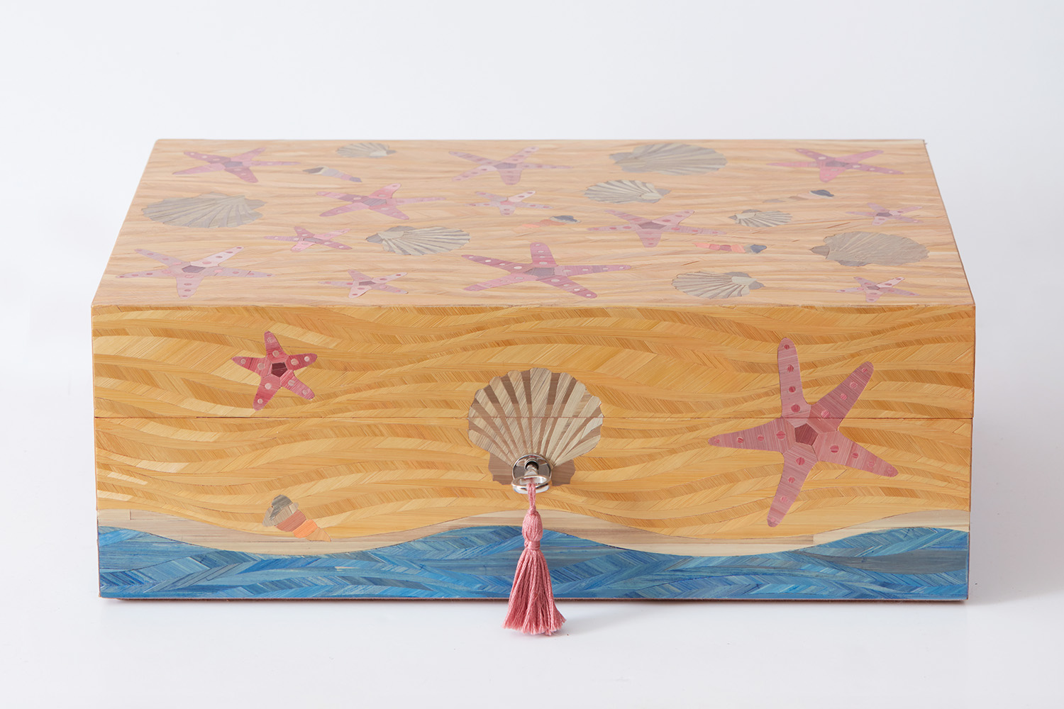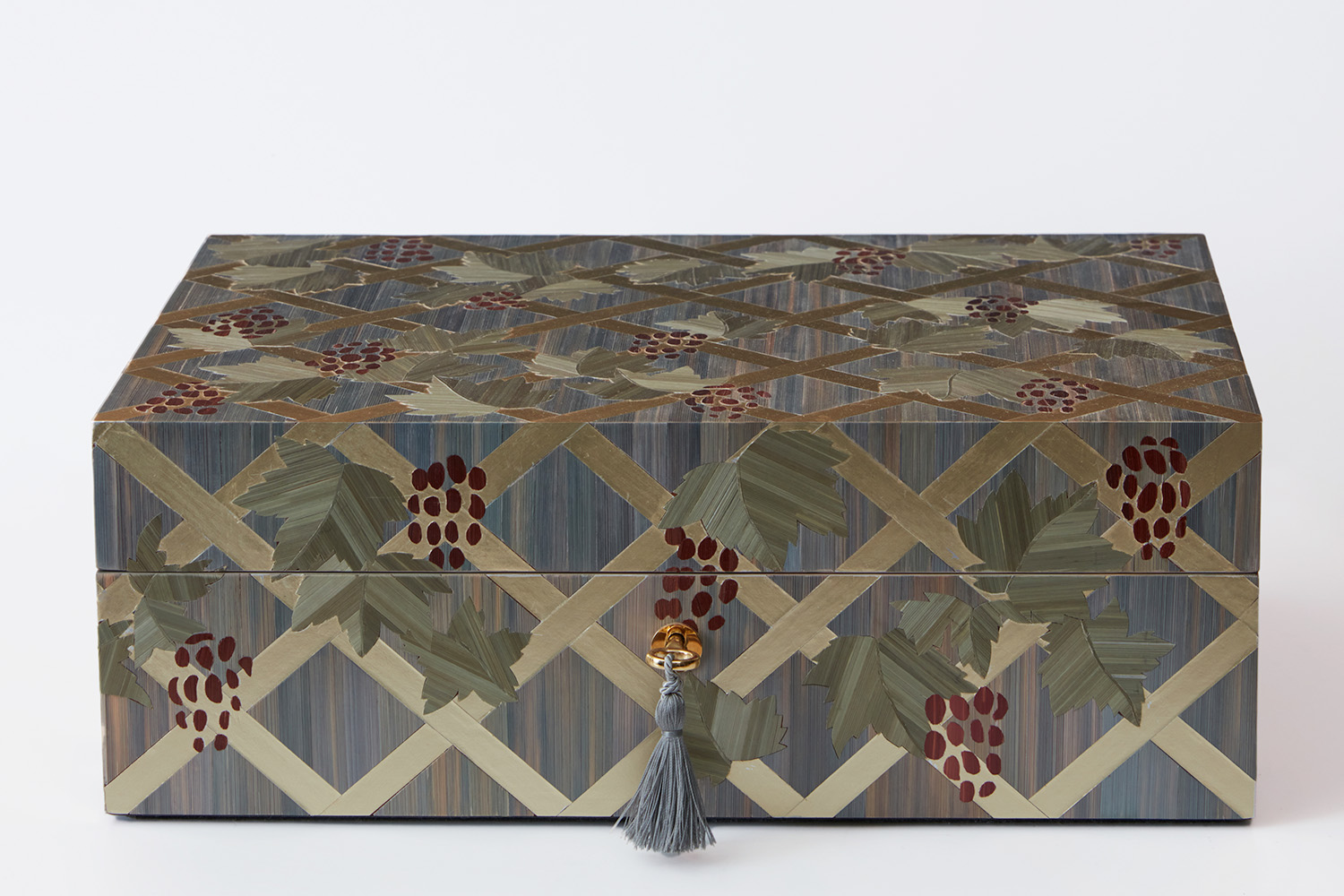 Throughout her career, Lison de Caunes has constantly innovated and enriched the straw marquetry technique. Using a palette of vibrant colors, she explores new textures, incorporating other materials such as gold leaf, mother-of-pearl and pâte de verre. Straw becomes an essential element in the design of poetic, contemporary settings.