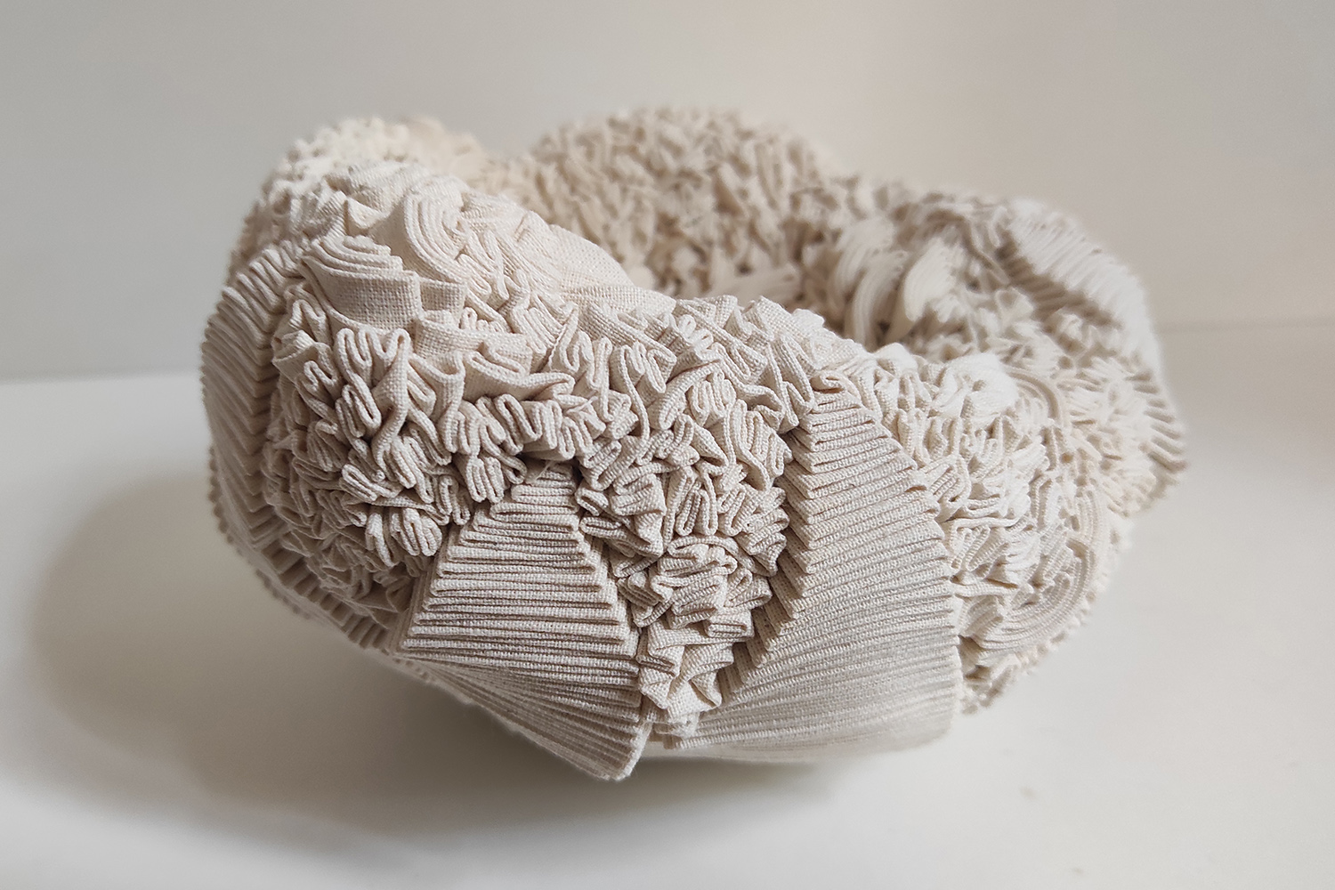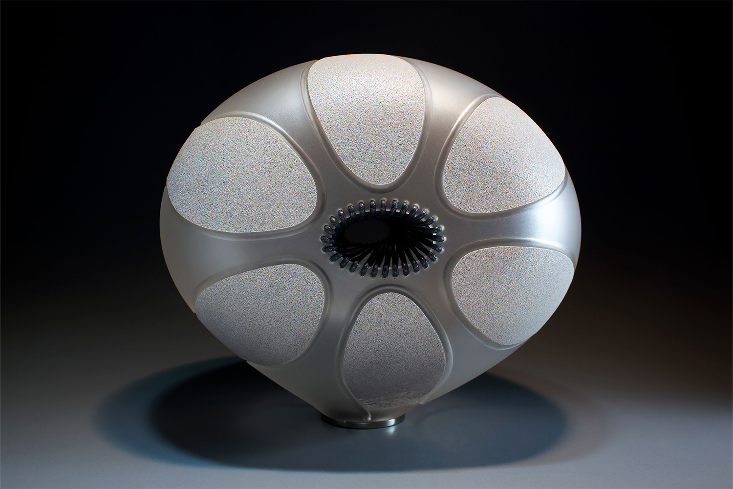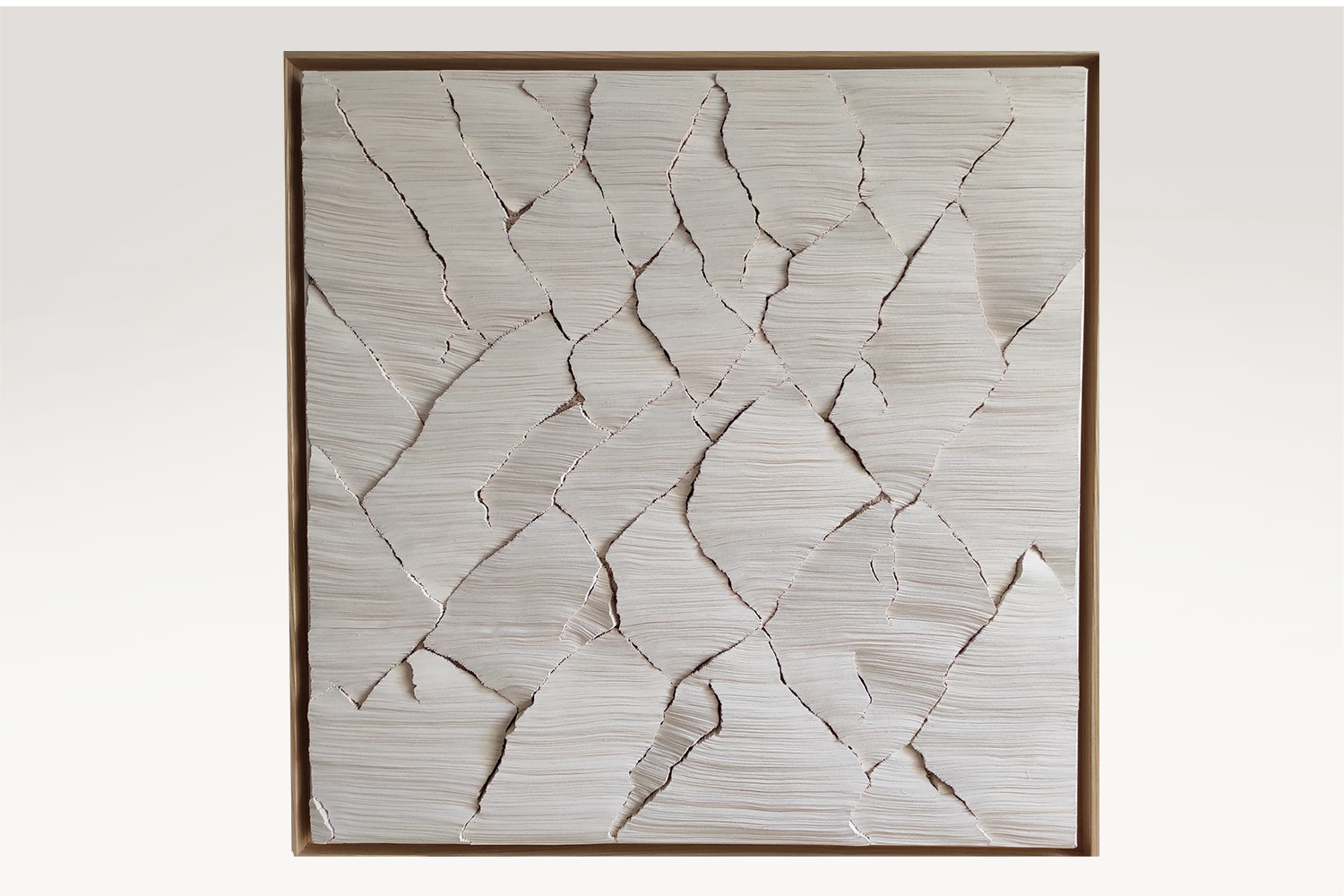 The gallery will present audacious and emblematic pieces from French cabinet-maker and designer Pierre Renart’s collections Fusion, Wave and Genesis, as well as the fascinating creations in cotton folds and pins by French textile sculptor Simone Pheulpin, who will exhibit her monumental wall installation “Décade,” made some 33 years ago!