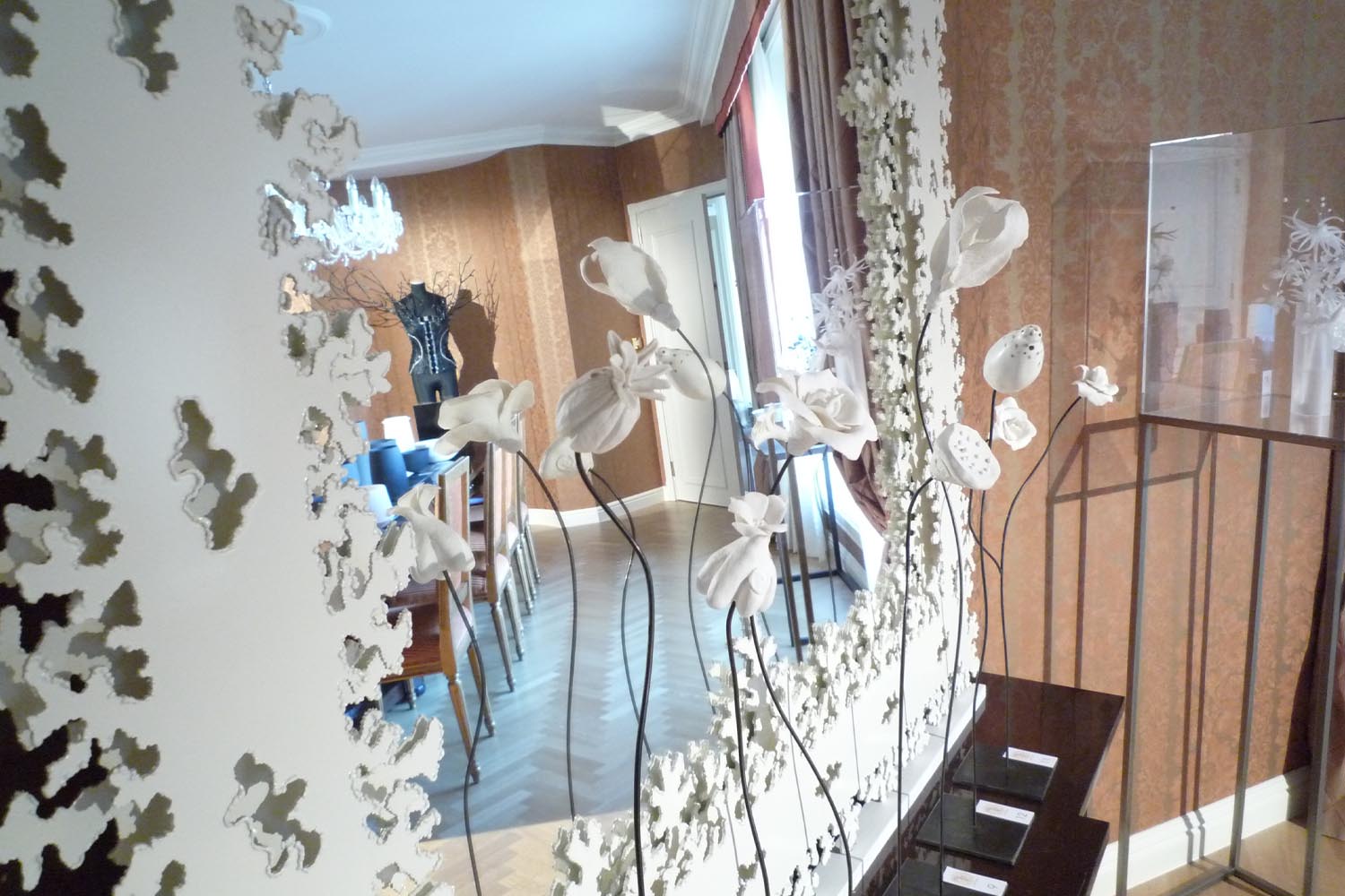 After the success of its first exhibition in the Maison Dotremont in Brussels in March 2009, maison parisienne is back in Brussels in March 2010. This year, setting its collections in the splendid Royal Suite of the Conrad Hotel and gracefully filling the space with intricate shapes and colors. “Verdant Follies” celebrated the return of flourishing spring with an exhibition of beautifully-crafted objects and high-end bespoke French furniture. Almost 250 unique creations filled this recently-renovated hotel, whose multiple floors overlook the world-renowned Avenue Louise.