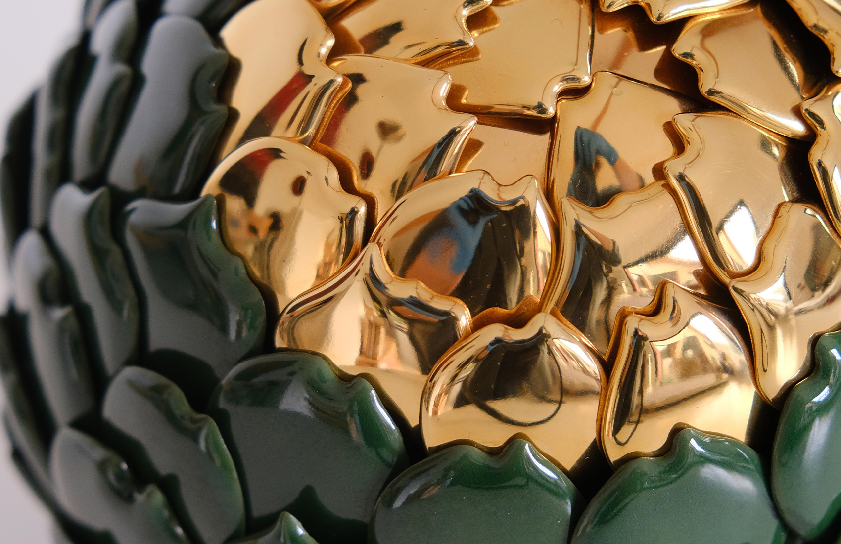 Porcelain, enamel, metal oxides, platinum, and gold using mixed media. No. 1/8