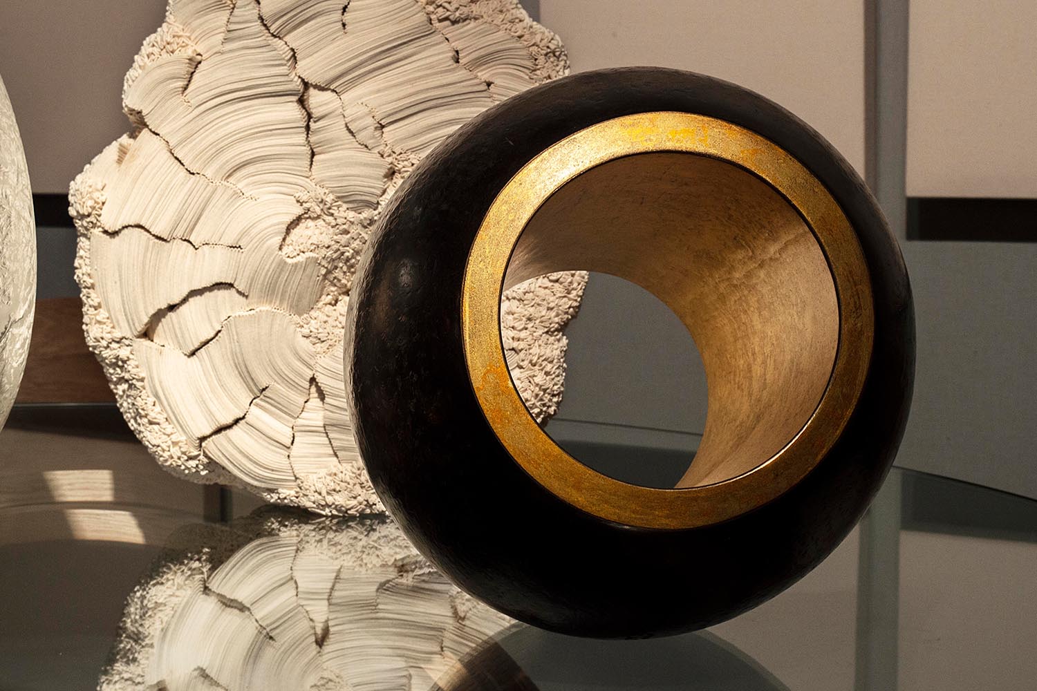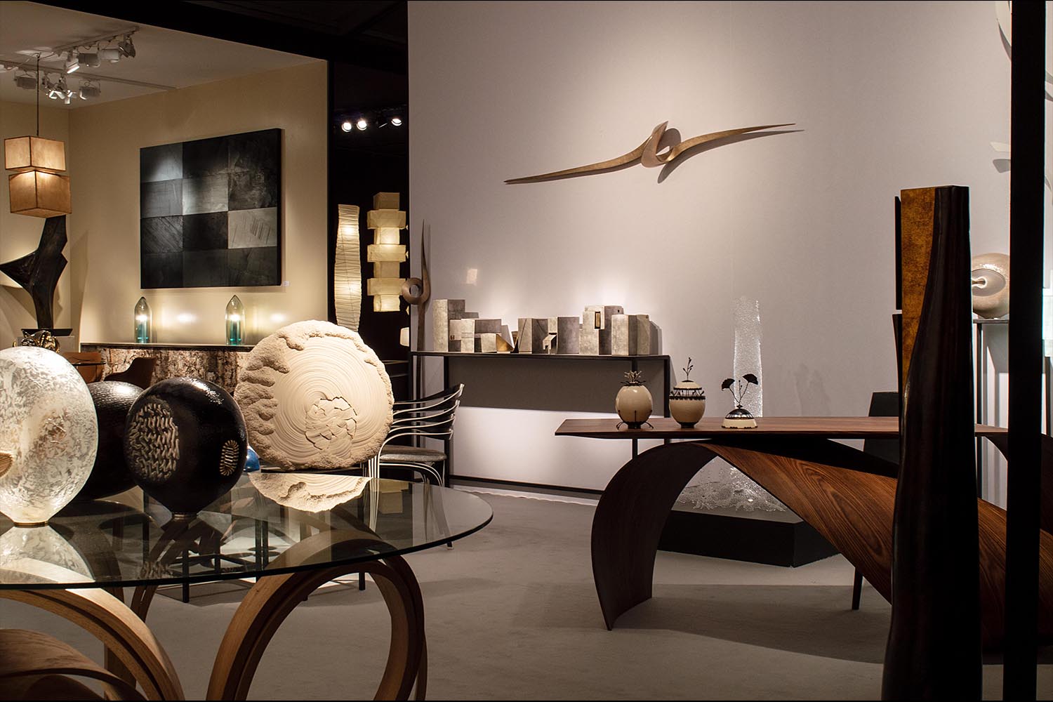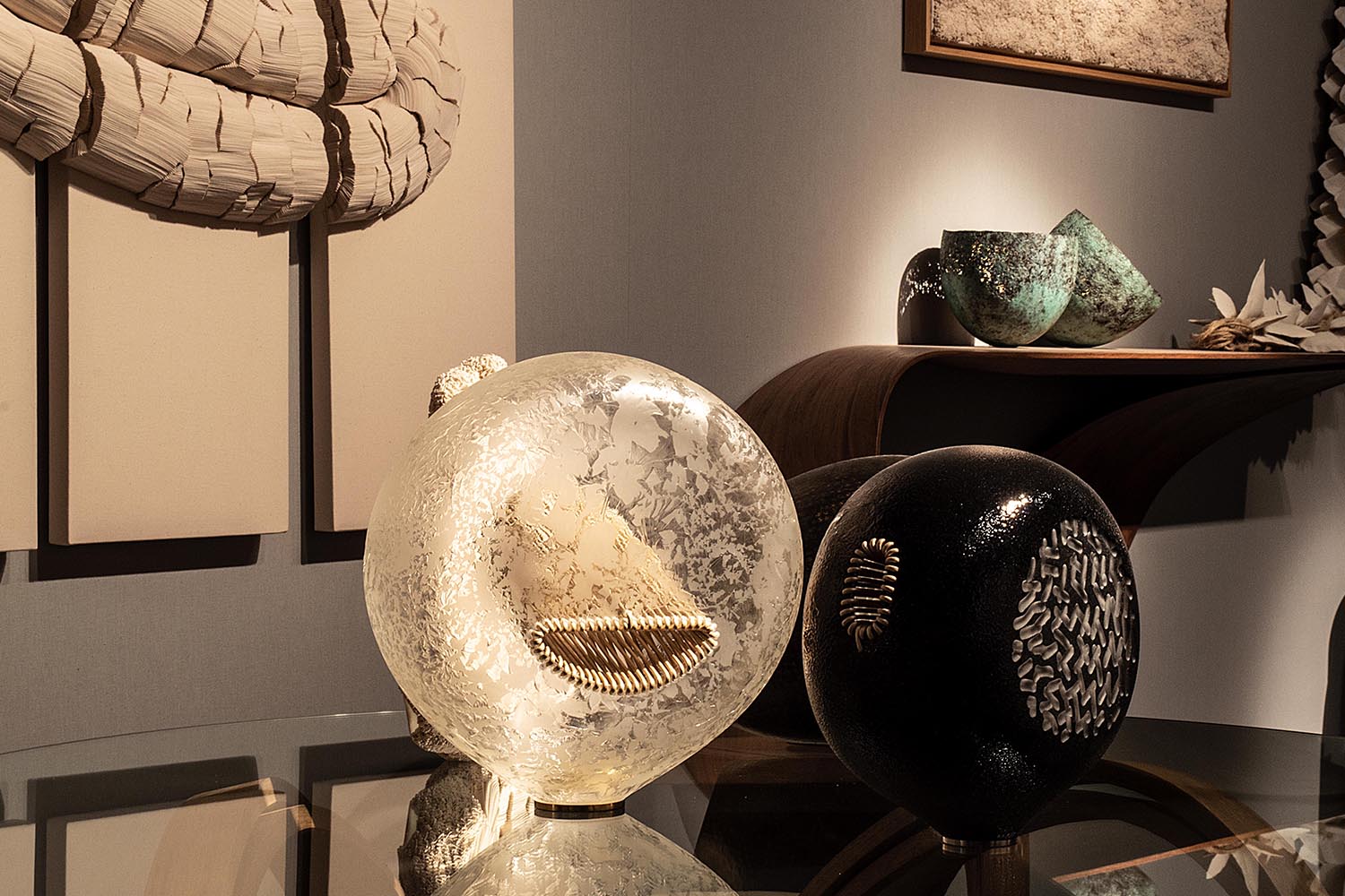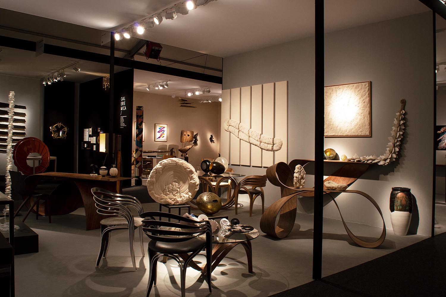 Pour sa toute première participation au salon PAD Paris, prestigieuse vitrine des arts décoratifs et de la création contemporaine, maison parisienne propose une sélection des plus belles œuvres de ses artistes de la matière, autour du travail du métal, du bois, de la céramique, du textile et du verre. Les pièces exposées sont propres à surprendre. Du bois élégamment courbé, la finesse des sculptures en cuivre martelé au fil du temps, de la dentelle qui s’avère être en verre…