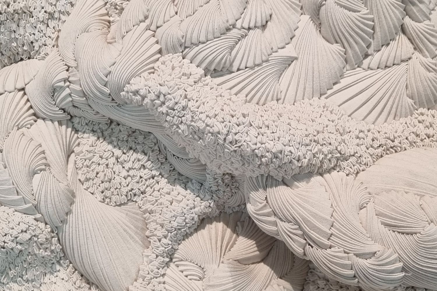 En écho au défilé de la collection Croisière 2024/25 de CHANEL à Marseille, la Galerie du 19M a créé une galerie éphémère dans le Fort Saint-Jean, rattaché au Mucem. Trois des exceptionnelles sculptures en coton et épingles de Simone Pheulpin sont présentées dans le cadre de cette exposition collective qui met à l’honneur les artisans et leur métier, en les faisant dialoguer avec la scène artistique marseillaise.