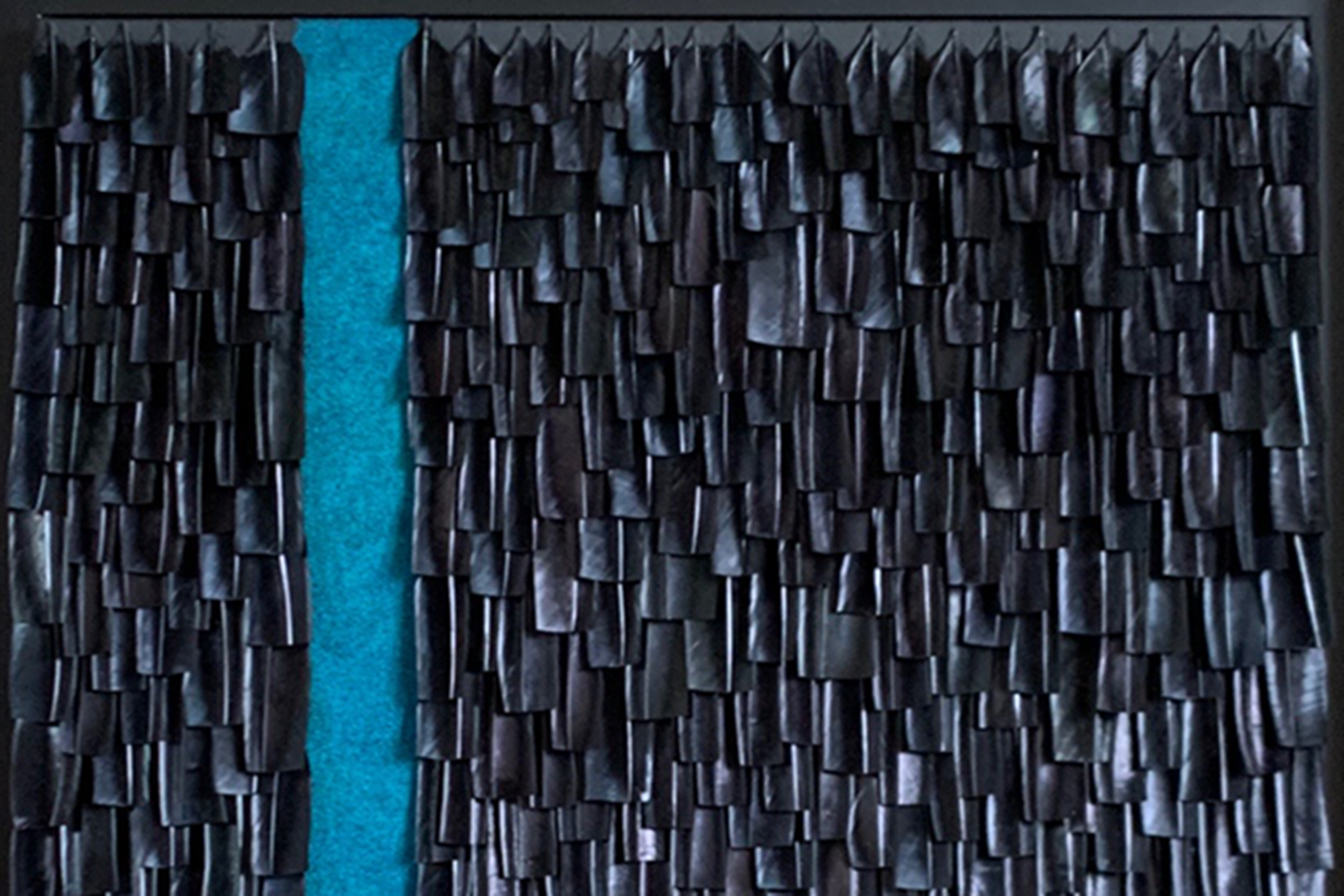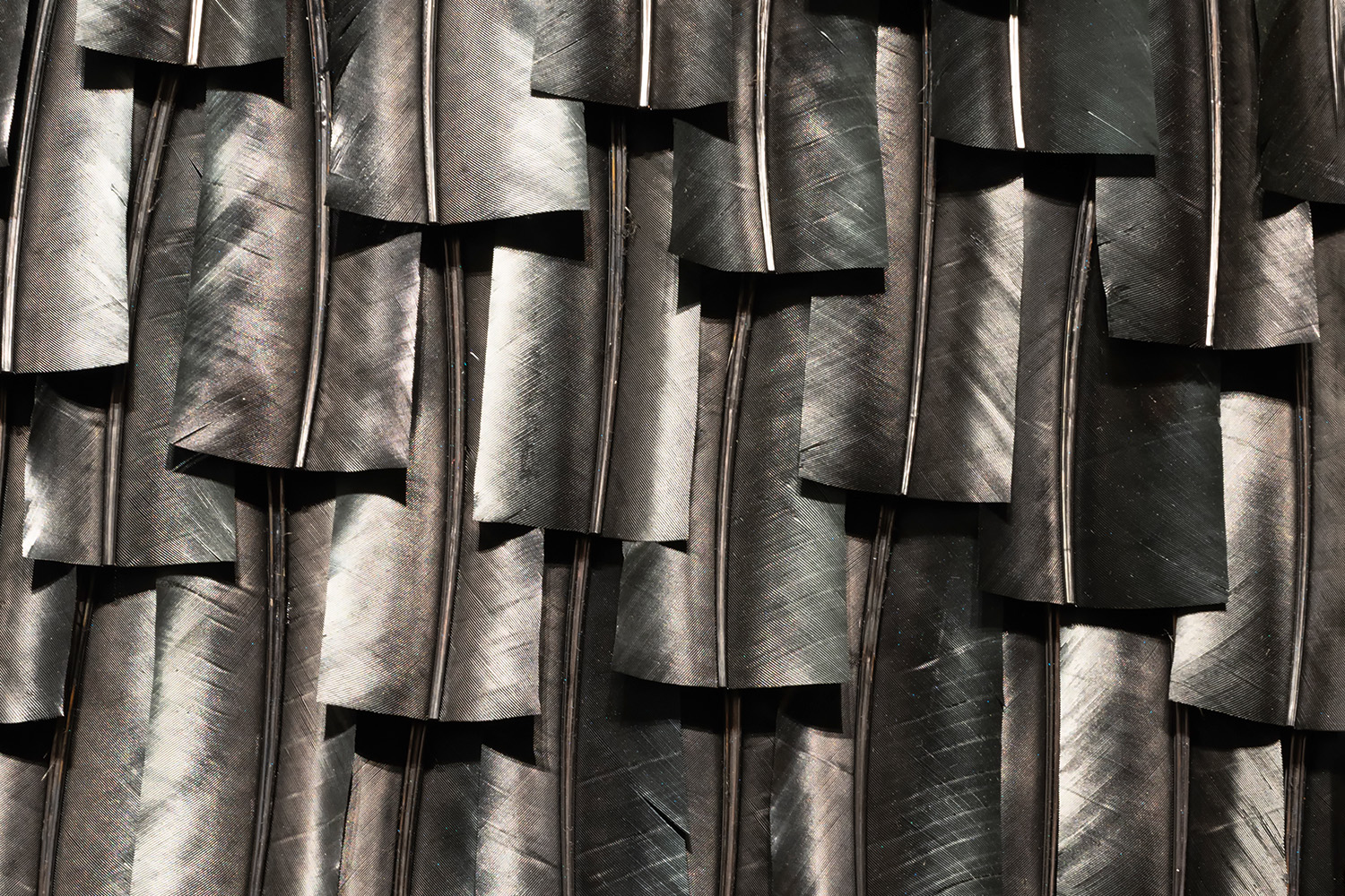 Plumes d’oie noires coupe droite, poudre de plume de paon bleu