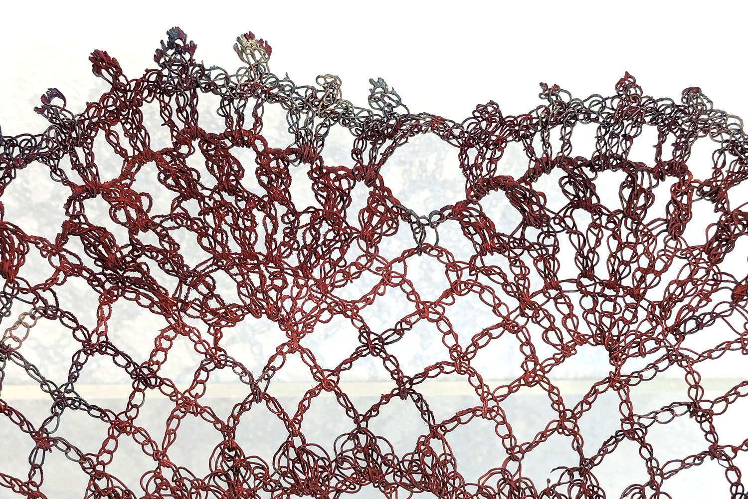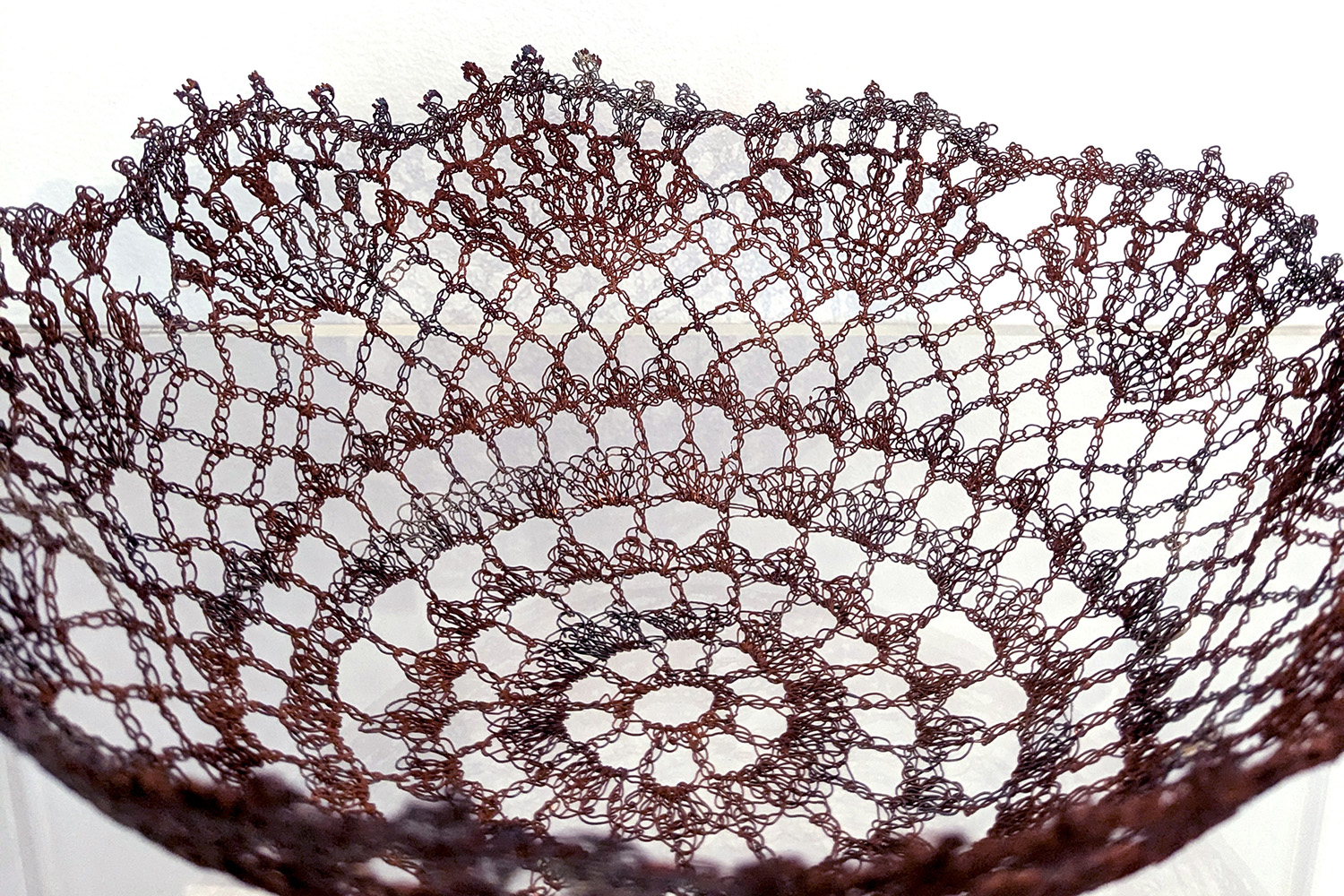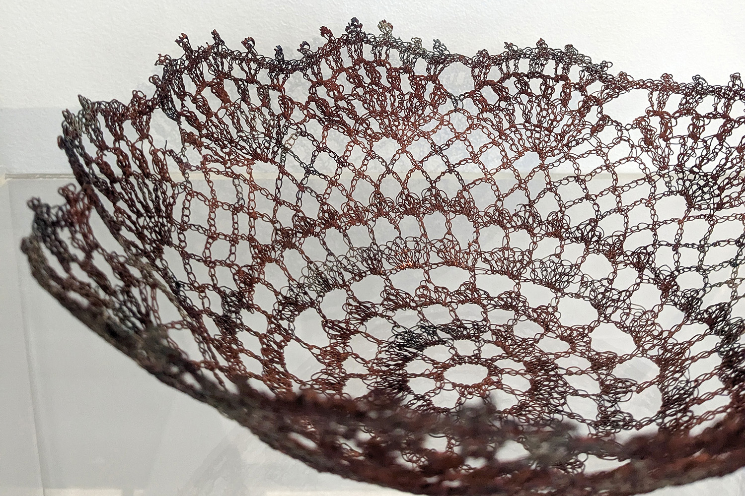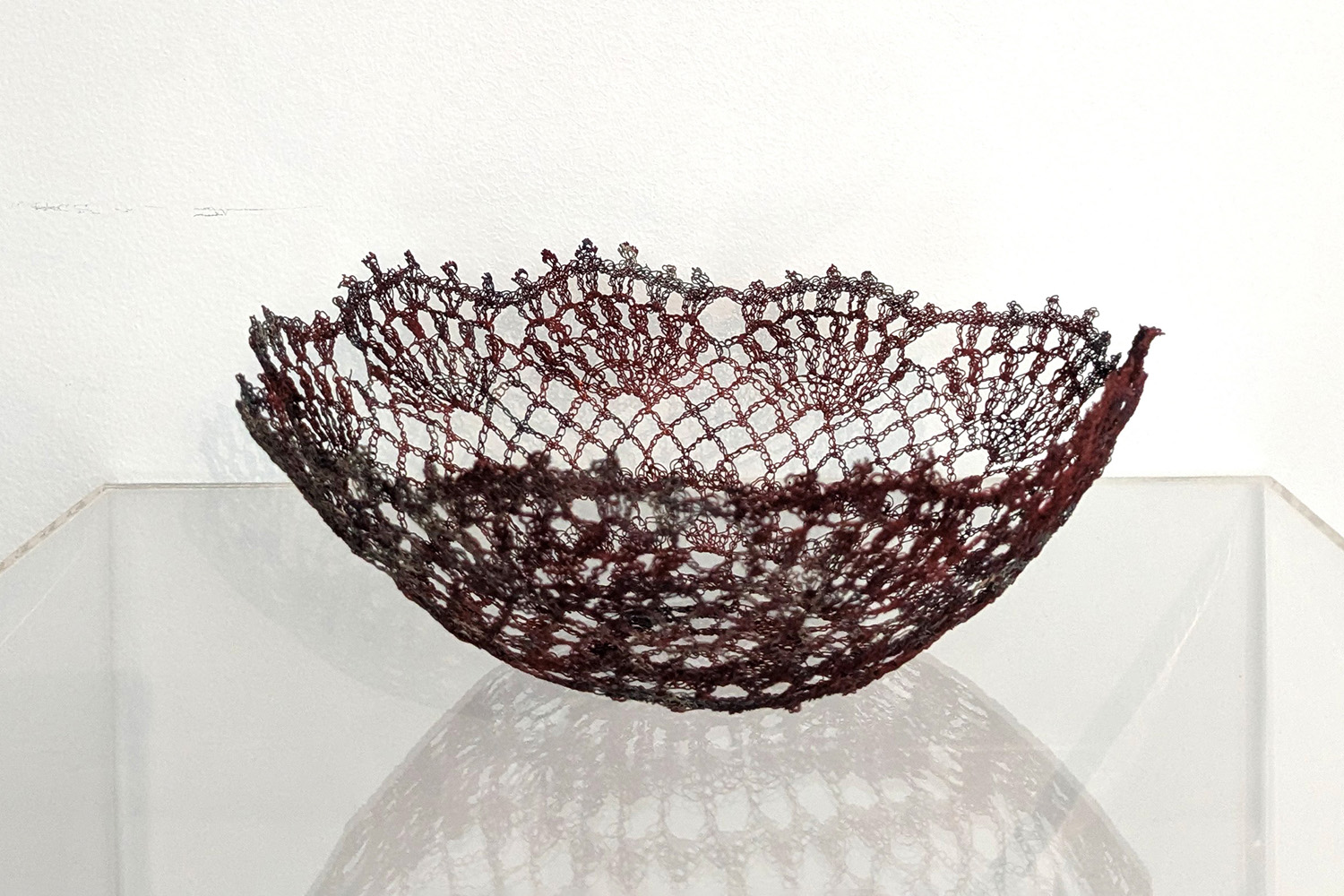 Pièce unique. Sculptures créées à partir de fins fils de métal crochetés, tricotés ou tressés, avant d’être solidifiées par électrolyse.