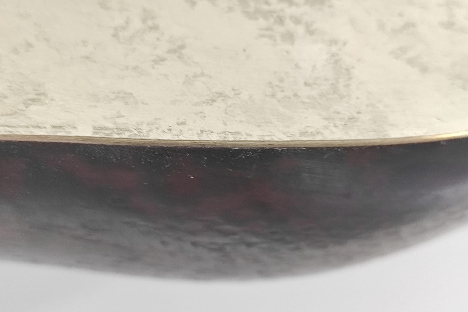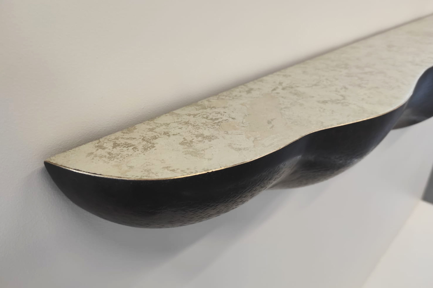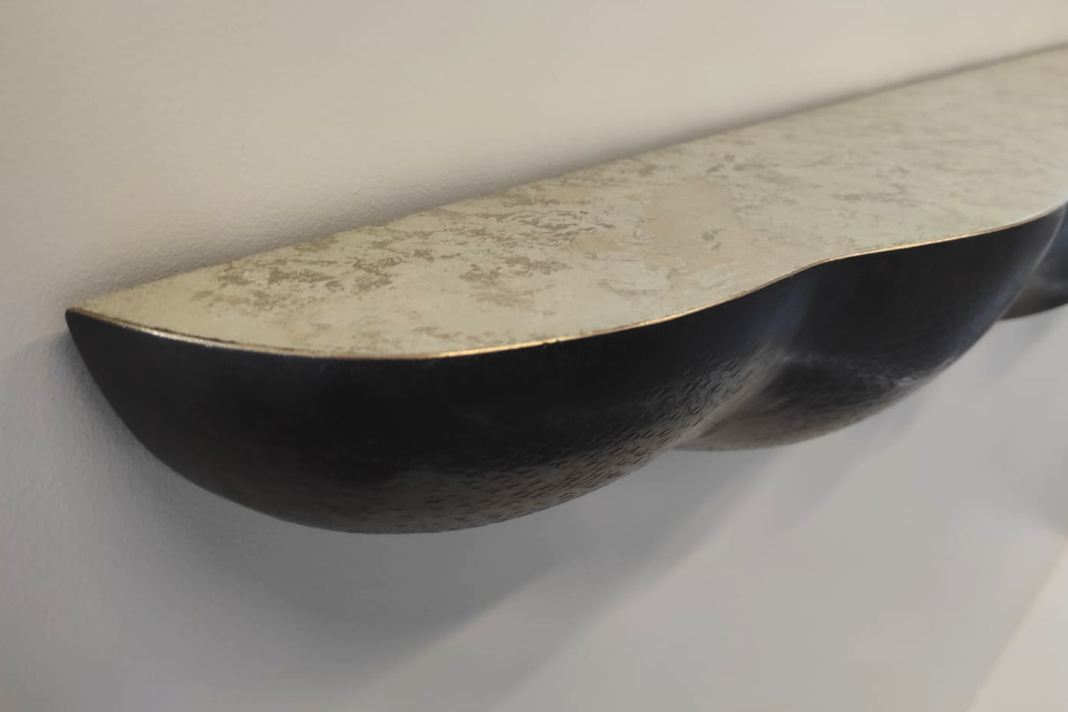 Laiton martelé, patine bronze, feuilles d’or blanc