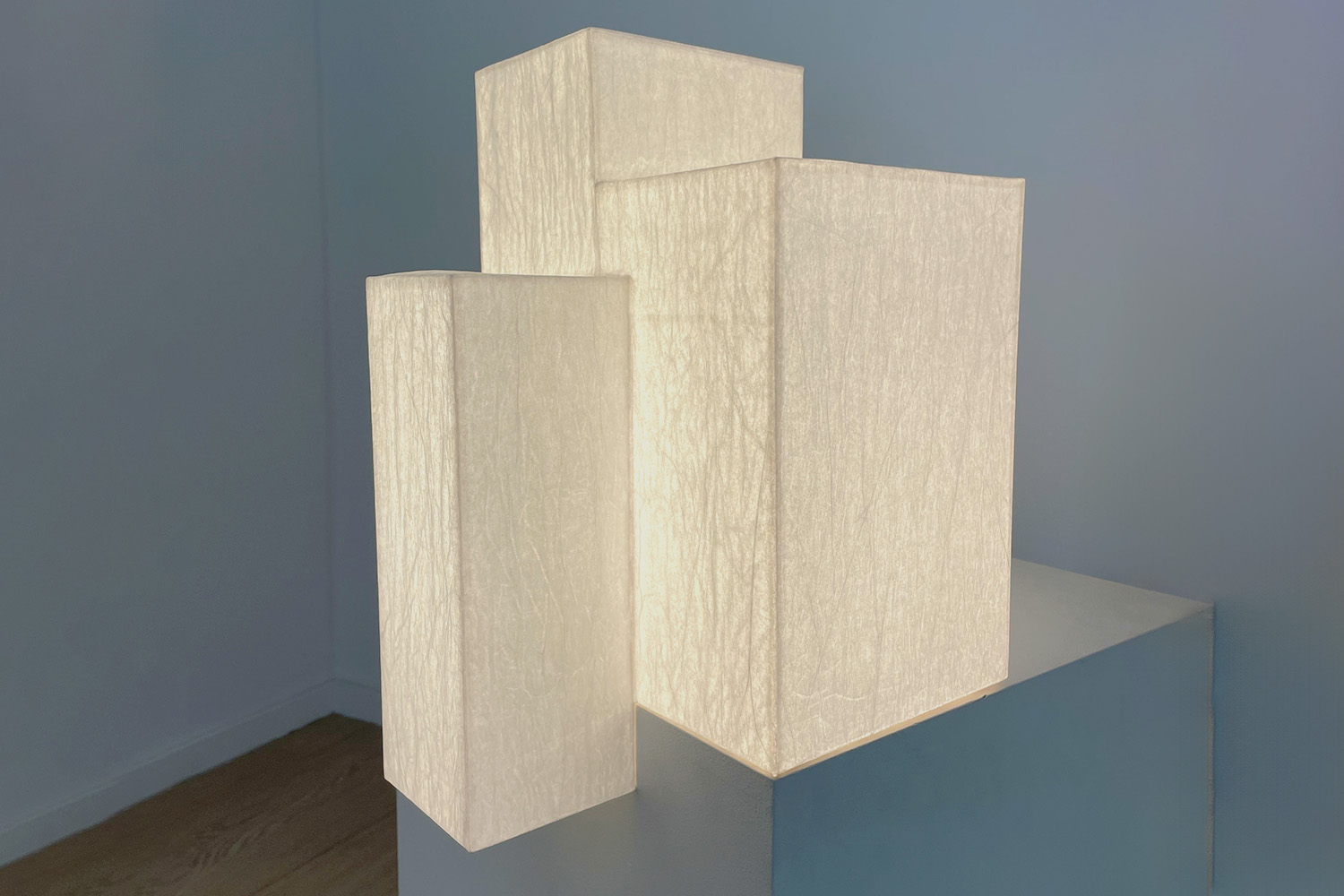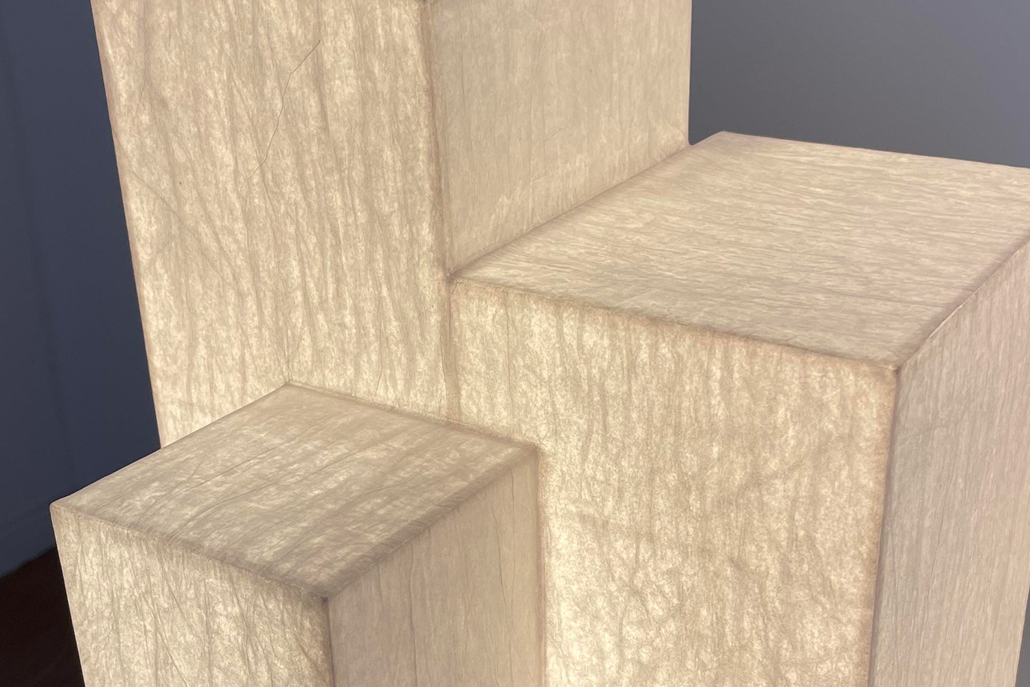 Sculpture lumineuse. Papier de soie, colle, blanc de titane, ampoule led.