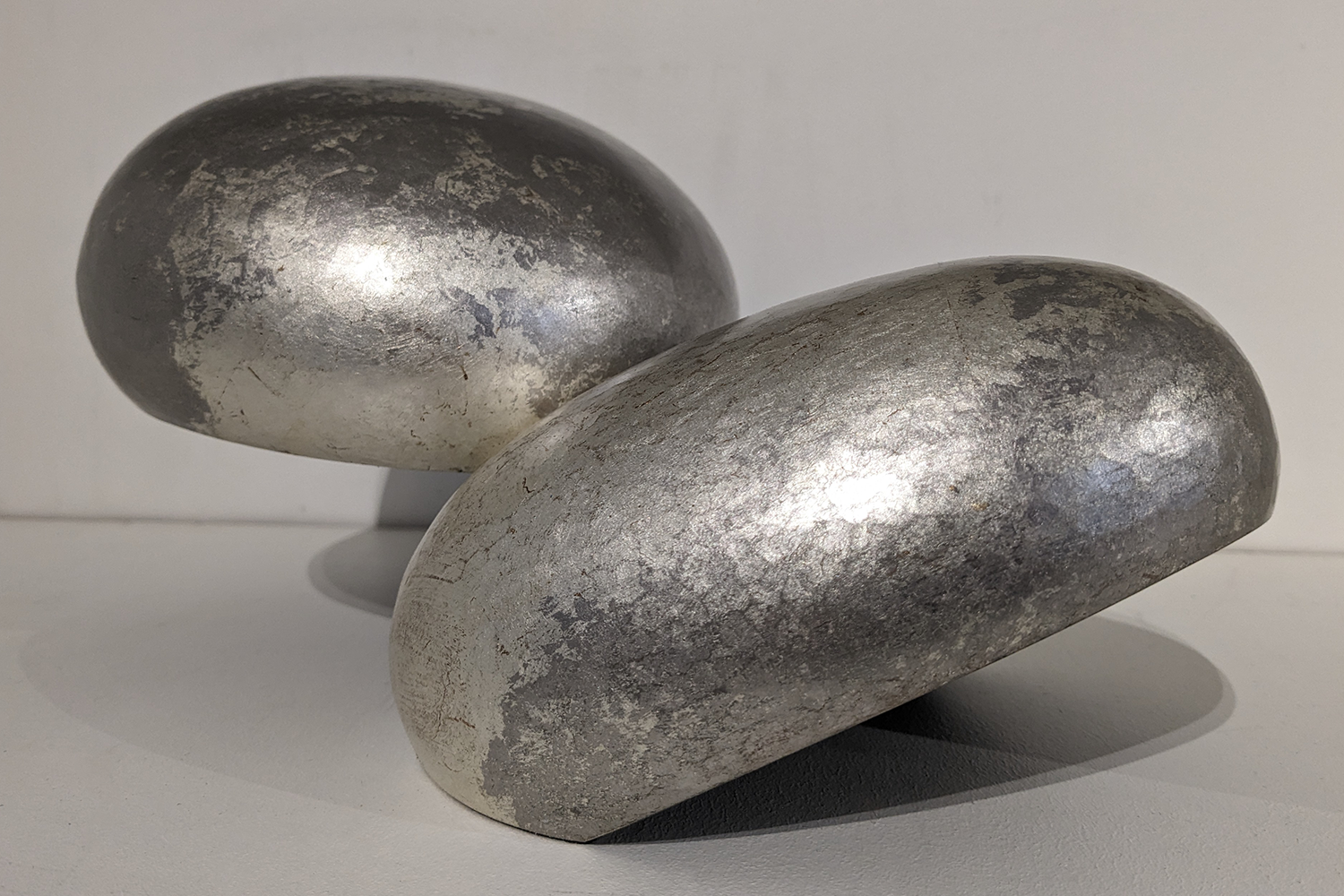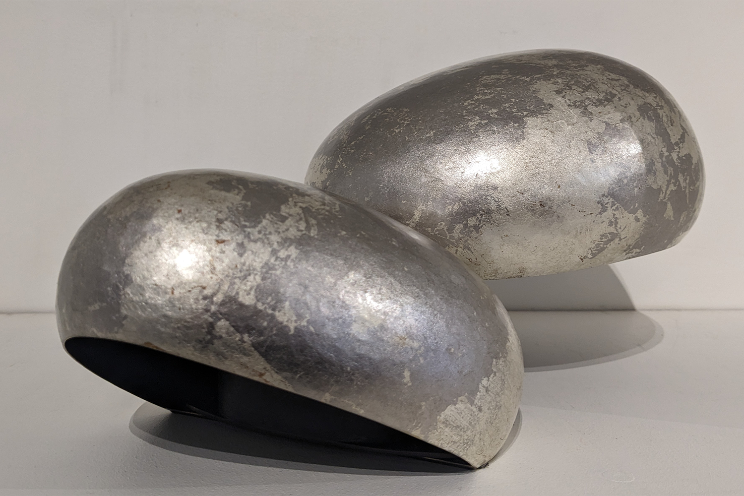 Laiton martelé, patine feuille d’or blanc, palladium, LED