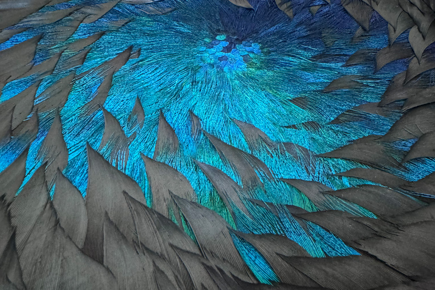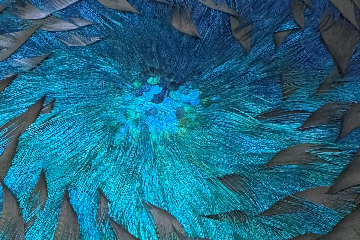 Palettes de plume de dinde et plumes bleu de paon, motif concentrique