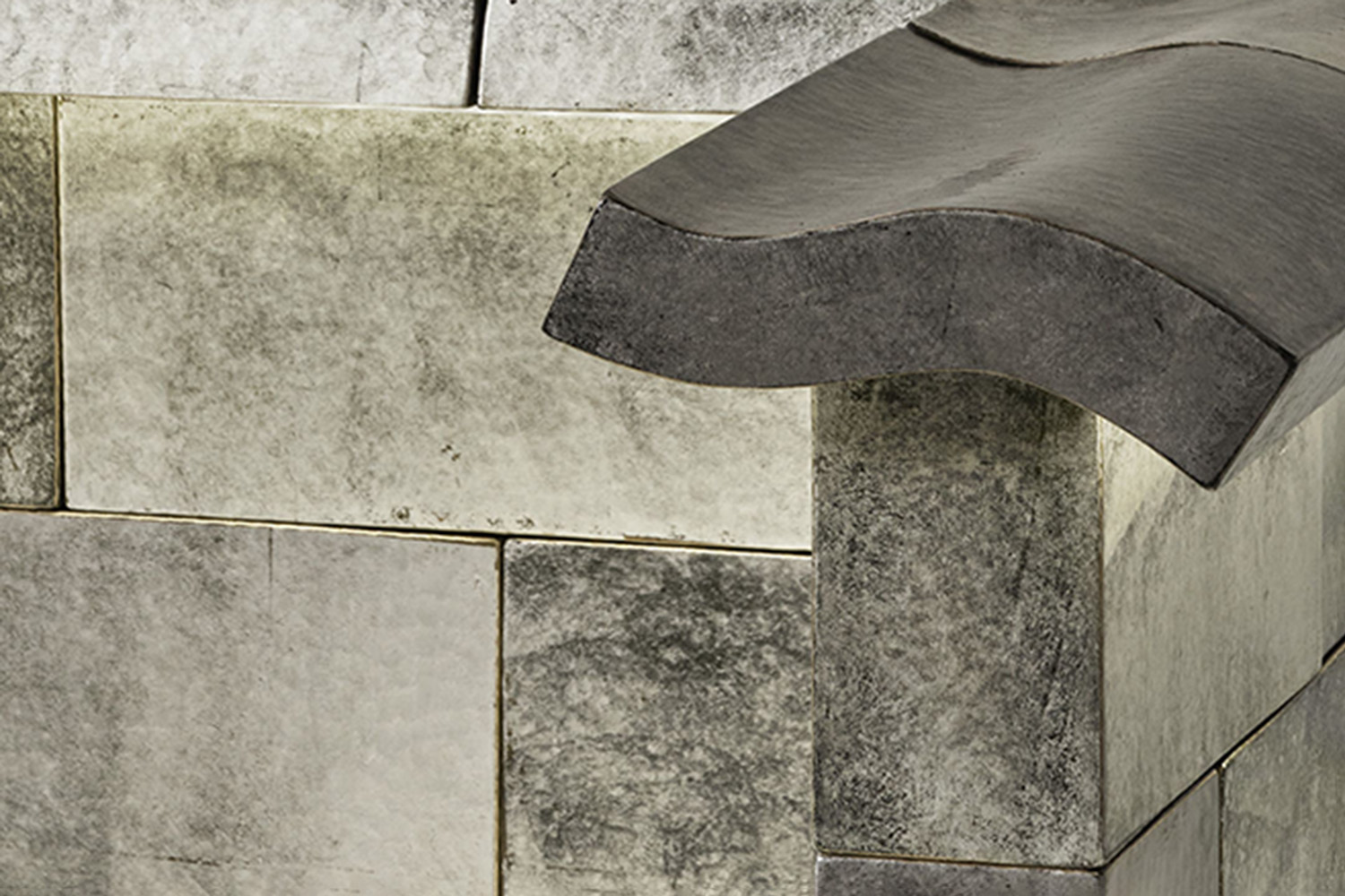 Laiton martelé, feuilles d’or et or blanc, bande LED