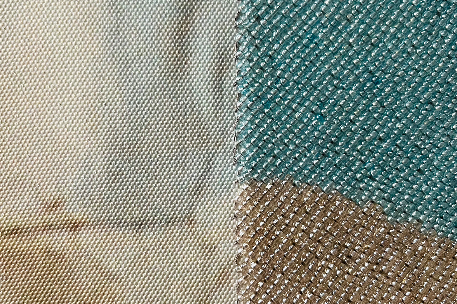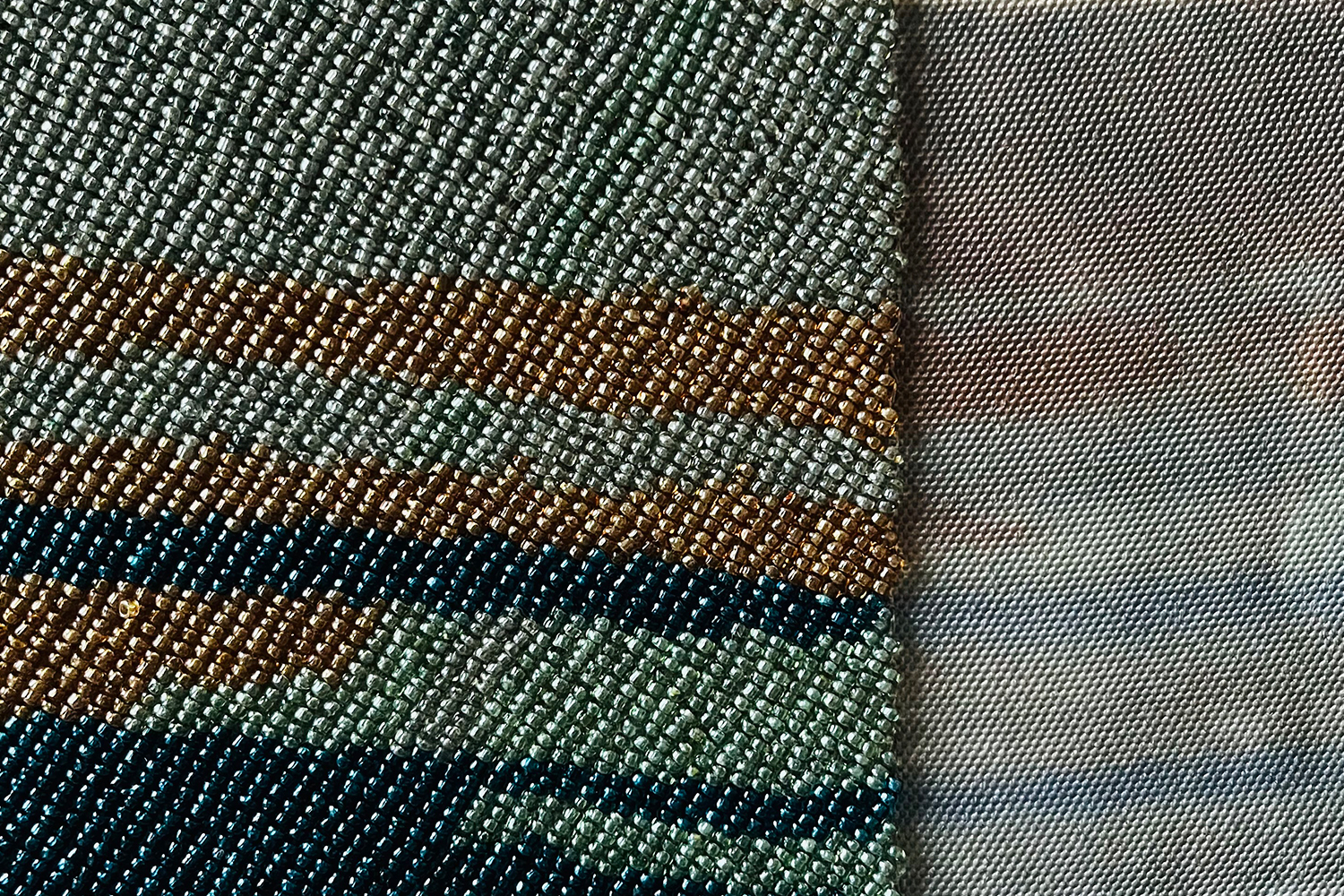 Photographie imprimée sur toile de peintre, broderie fils, broderie perles