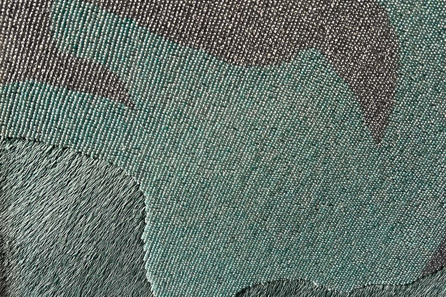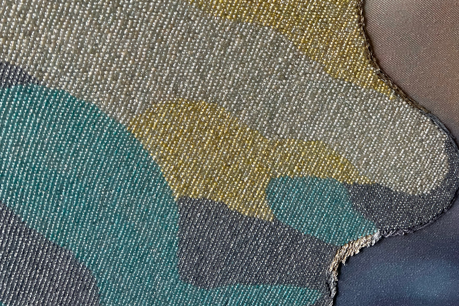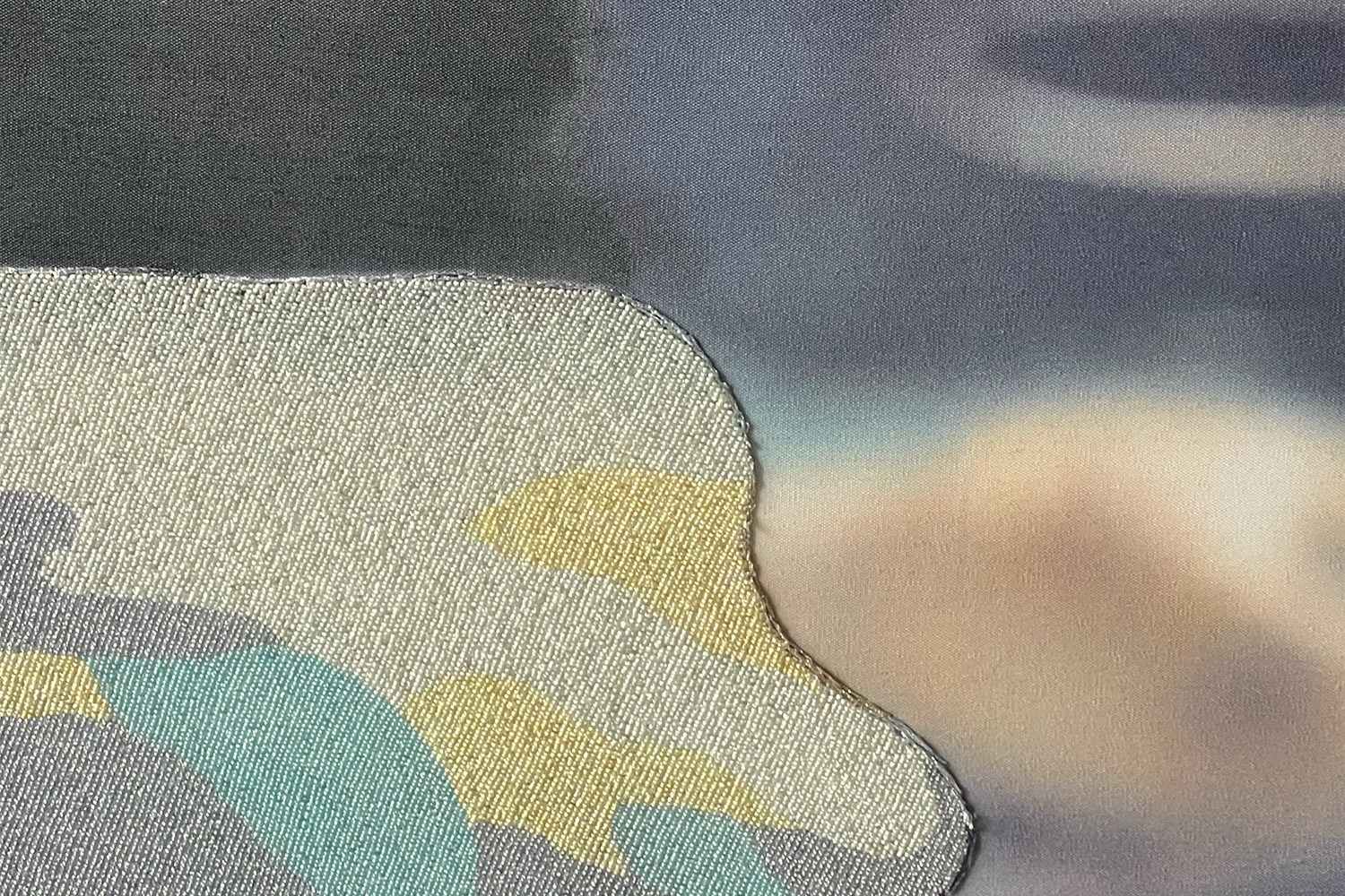 Photographie imprimée sur toile de peintre, broderie fils, broderie perles, encre de Chine, patine argent