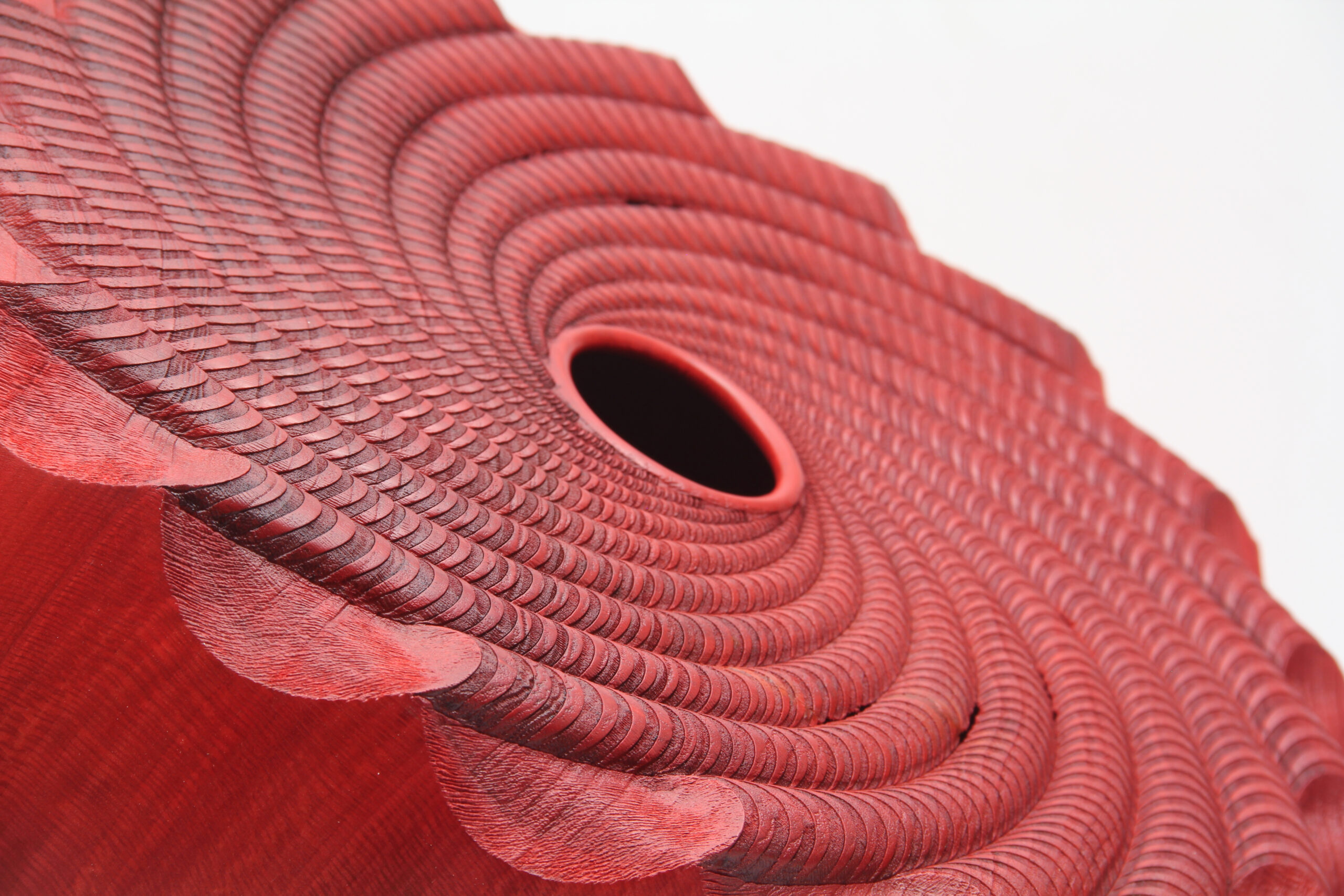 Sculpture en platane, patiné rouge
